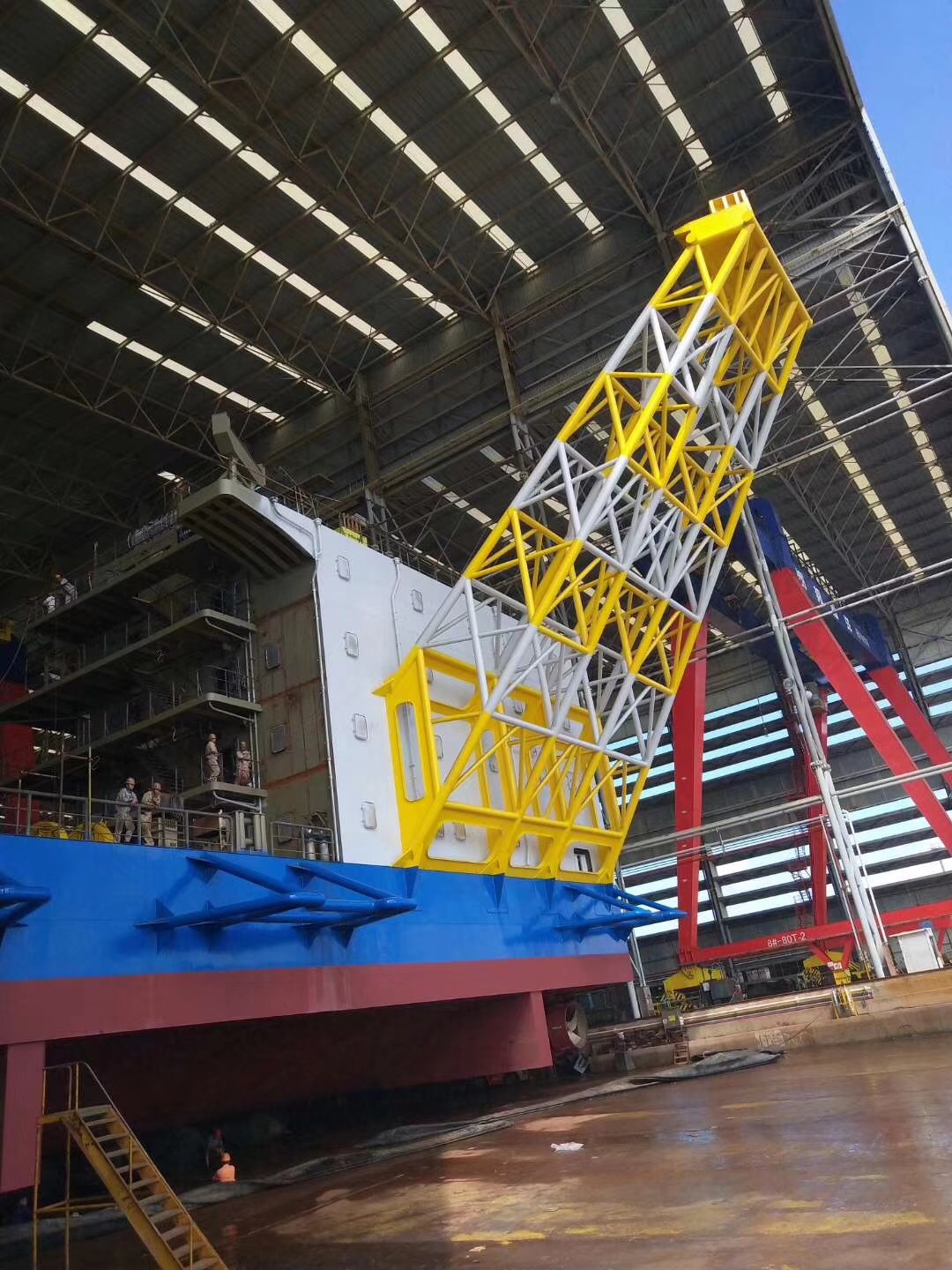 熱烈祝賀由南通豪通船務在潤邦海洋總包主船體搭載工程的“華電穩(wěn)強”號自升式海上風電安裝作業(yè)平臺于2018年8月28日中午順利下水!