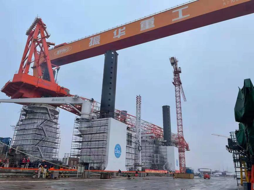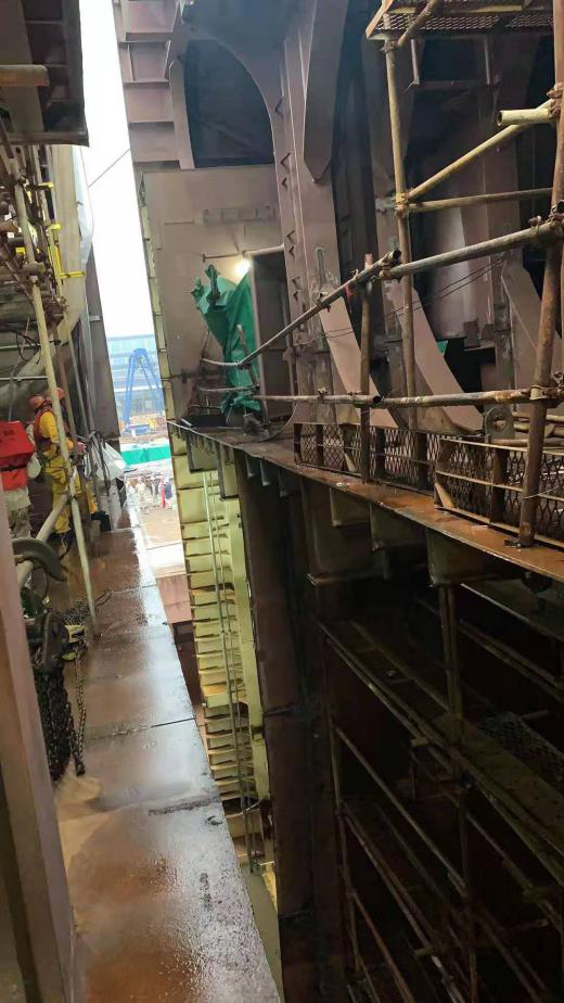 1200T風(fēng)電安裝船南通豪通船務(wù)有限公司,除承接主船體制作及合攏外。更是承接了該船三分之二的特殊結(jié)構(gòu)制作及合攏(包含3個圍井分段2個固樁室)工程。這些工程對精度和焊接質(zhì)量有著較高的要求,總經(jīng)理薛志堅掛帥督導(dǎo),安排最優(yōu)秀的裝配班組和最好的焊工,將一份優(yōu)異的成績單交到了船東和振華重工手中,得到了業(yè)主的肯定。