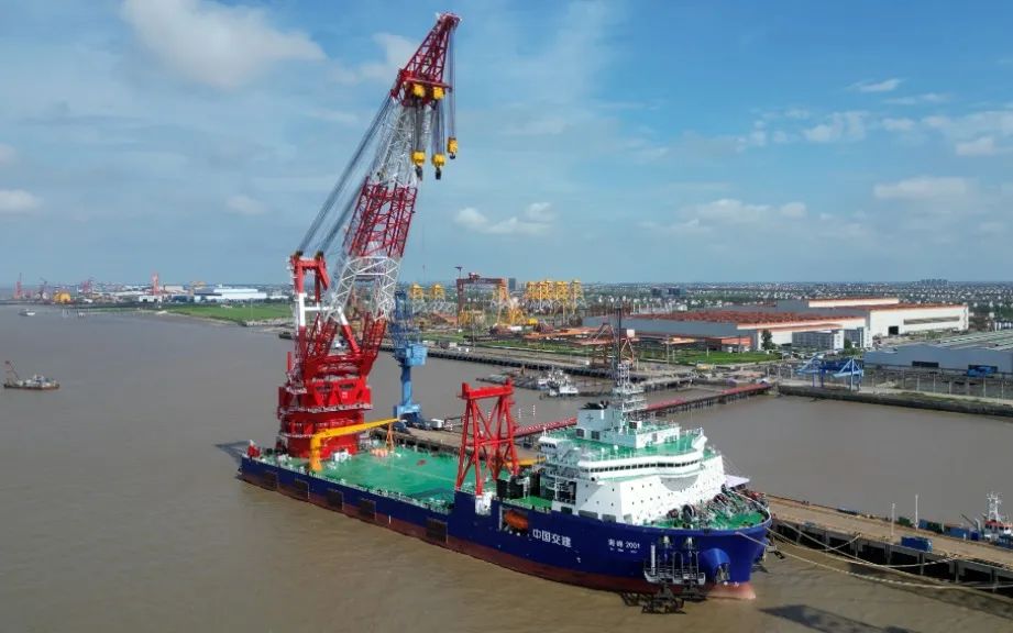 “海峰2001”總長195米,型寬46.9米,型深16米,設(shè)計航速10節(jié)。該船采用最新的工程設(shè)計理念和先進的技術(shù)手段,具備出色的操作性能和可靠性,配備4000噸全回轉(zhuǎn)起重機,具有DP-2動力定位能力,配備8點錨泊定位系統(tǒng),采用6.6千伏高壓配電系統(tǒng),是一艘現(xiàn)代化、高性能的起重船。該項目交付后,將用于15~20兆瓦及以上機組單樁、導(dǎo)管架等多種基礎(chǔ)施工。同時單船便可完成港口裝載、海上運輸、吊裝及打樁等主要工序,滿足深遠海風場升壓站及其他海上重大設(shè)施的吊裝作業(yè)需求,為提升我國海上風電基礎(chǔ)裝備水平,實現(xiàn)雙碳目標和清潔能源開發(fā)提供有力支撐。